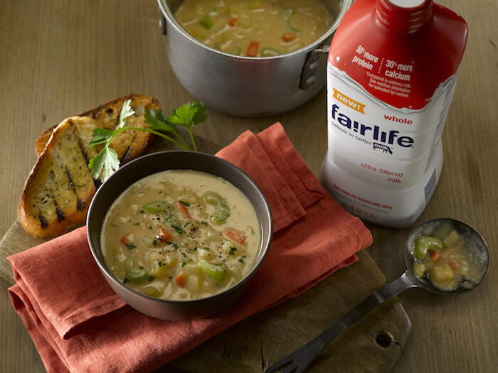I’ve partnered with fairlife ultra-filtered milk to share my twist on their delicious recipe for Cream of Potato Soup.