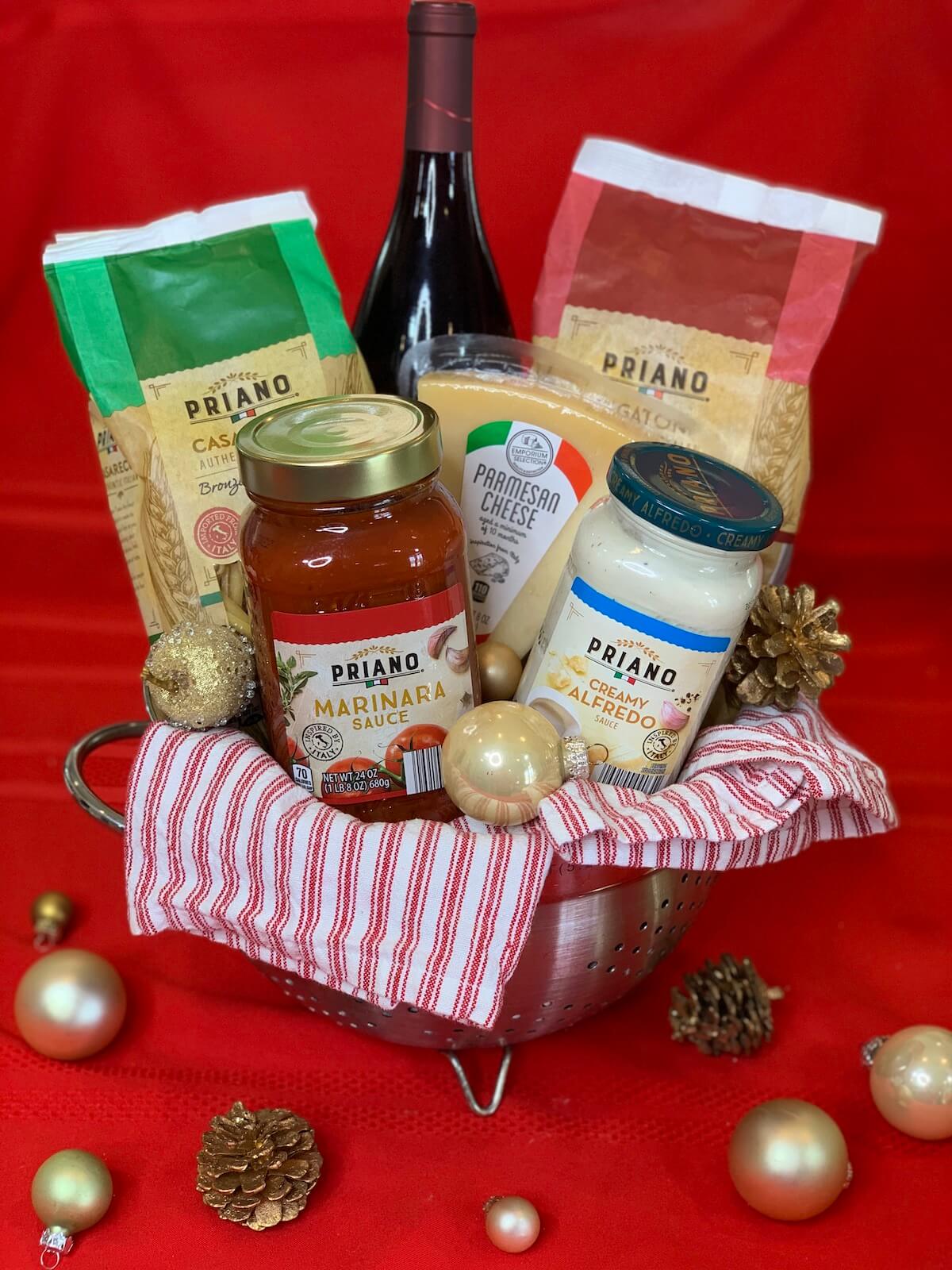You can also give a Date-Night-In basket with everything needed to make a romantic dinner for two with noodles, sauce, bread, parmesan cheese and a bottle of wine.